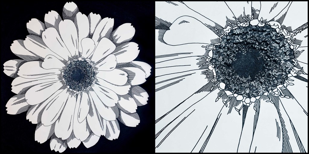 In our fast-paced world, the immediacy of response, and the artworks created in response to that pace, has resulted in a decline of technique and the skills of hand created elements. This artwork is a measured response to slow down and look deeper. At first glance, it may seem simple, but deeper observation reveals layers of complexity. The viewer only sees what they are willing to take in.