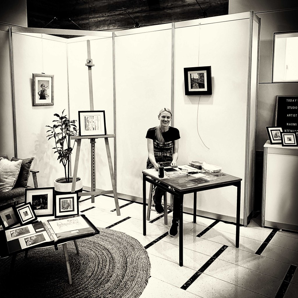 Naomi’s current work explores and challenges the traditional perception of printmaking as a two-dimensional artform. Her work combines bookbinding and paper art with traditional printmaking processes to explore the interplay of depth within her artworks. This fusion of old and new techniques provides a unique perspective and interpretation of traditional processes in a contemporary style. The construction and deconstruction of ideas and the themes of perception and placement are important aspects of her work. She has made a conscious choice to challenge the limits of technical proficiency based on hand craftmanship instead of a reliance on computer generated AI materials and processes. It is a deliberate choice to use traditional printmaking techniques in new ways, focussing on a slow and meticulous process of creating unique state print works, a parallel to the complex and convoluted world.